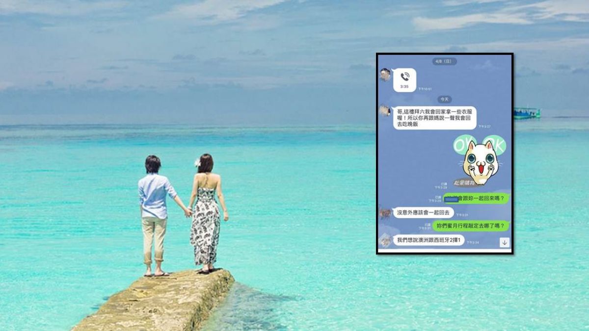 一名男網友在臉書不公開社團「爆怨公社」PO文,表示自己的表妹剛結婚,打算和老公到澳洲或西班牙度蜜月,但表妹卻為此相當煩惱,因為婆婆和小姑竟也想一起去,老公則認為都是一家人,因此不太介意。