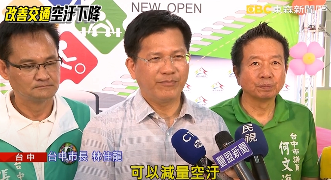 台中市長林佳龍:「我們的汽機車隨著人口快速增加,我們捷運綠線快要好了,鐵路高架化今年也會全線通車,加上新規劃的公車路網,還有iBIKE的出租站,我相信台中市的交通改善可以減量空汙。」