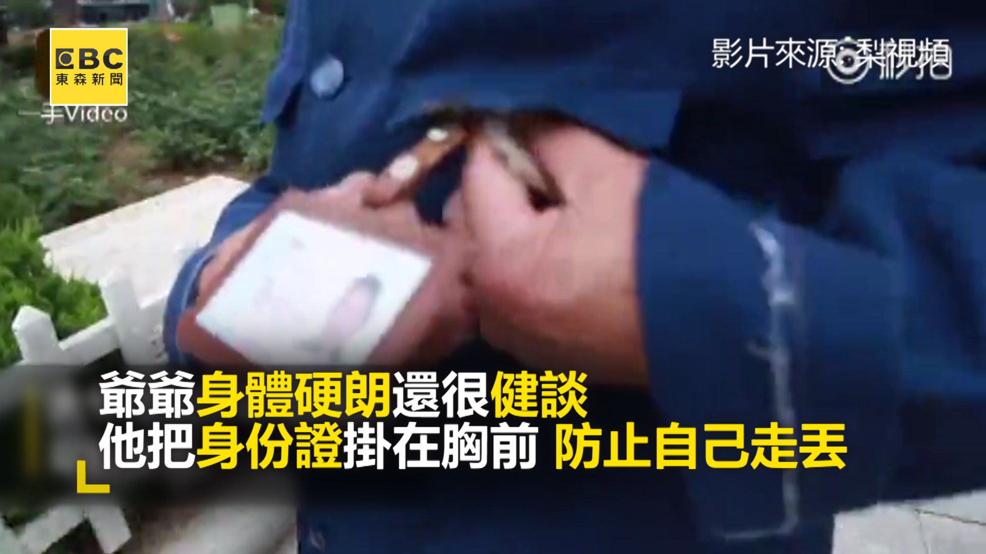 ▲爺爺把身份證掛在胸前,防止自己走丟(圖/翻攝自梨視頻)