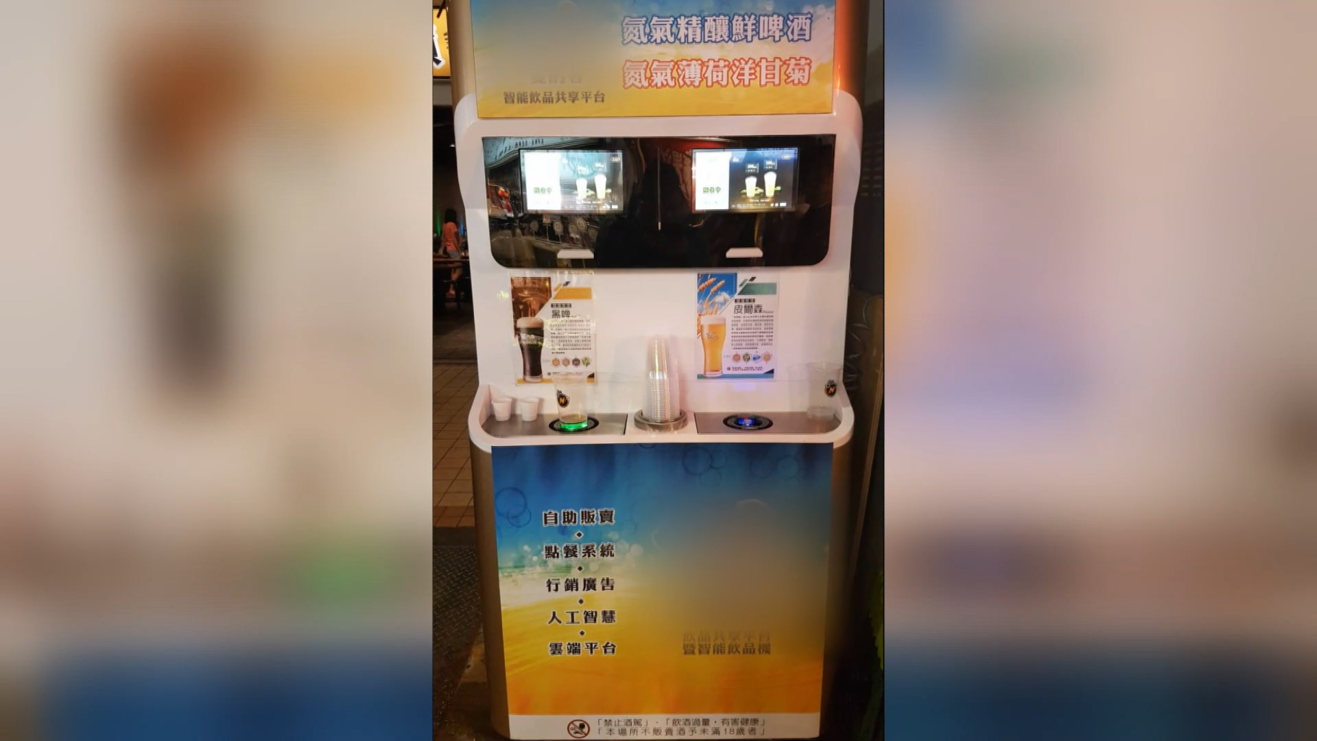 自動販賣機,號稱使用人工智慧,只要透過手機QR CODE掃描,就能買到免洗的杯裝啤酒,不過這樣看似方便的機器,擺在路邊卻引發議員質疑,因為有民眾投訴,此類的酒類機器,只要透過悠遊卡、一卡通,或是電子錢包的方式就可以付款,如果遇上未成年消費者,恐怕沒辦法有效辨識身分。民眾也表示,未成年人若無人管看,可能會自己投錢去買。