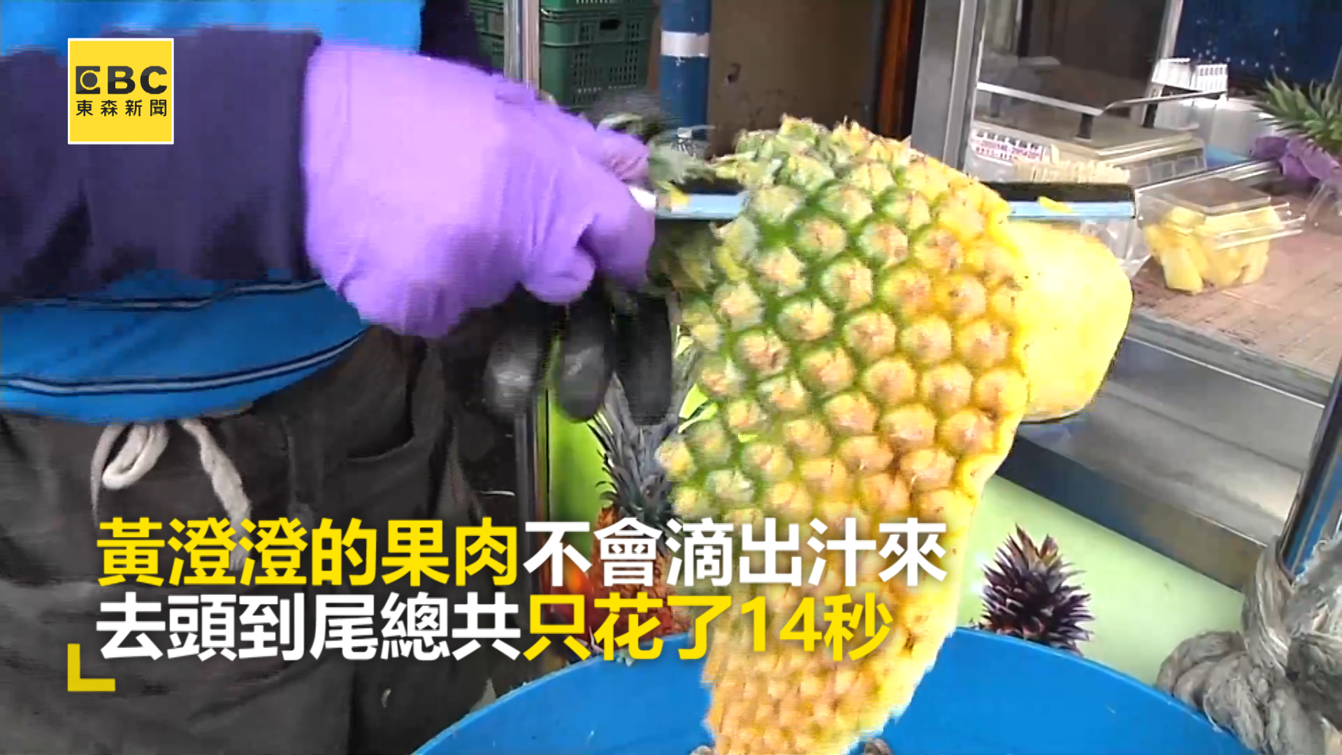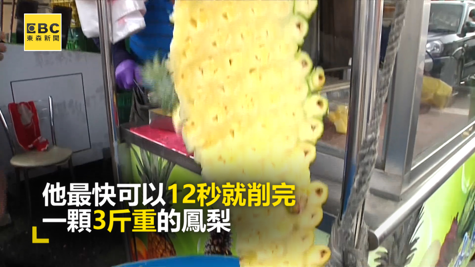▼老闆最快紀錄可以12秒就削完一顆三斤重的鳳梨(圖/東森新聞)