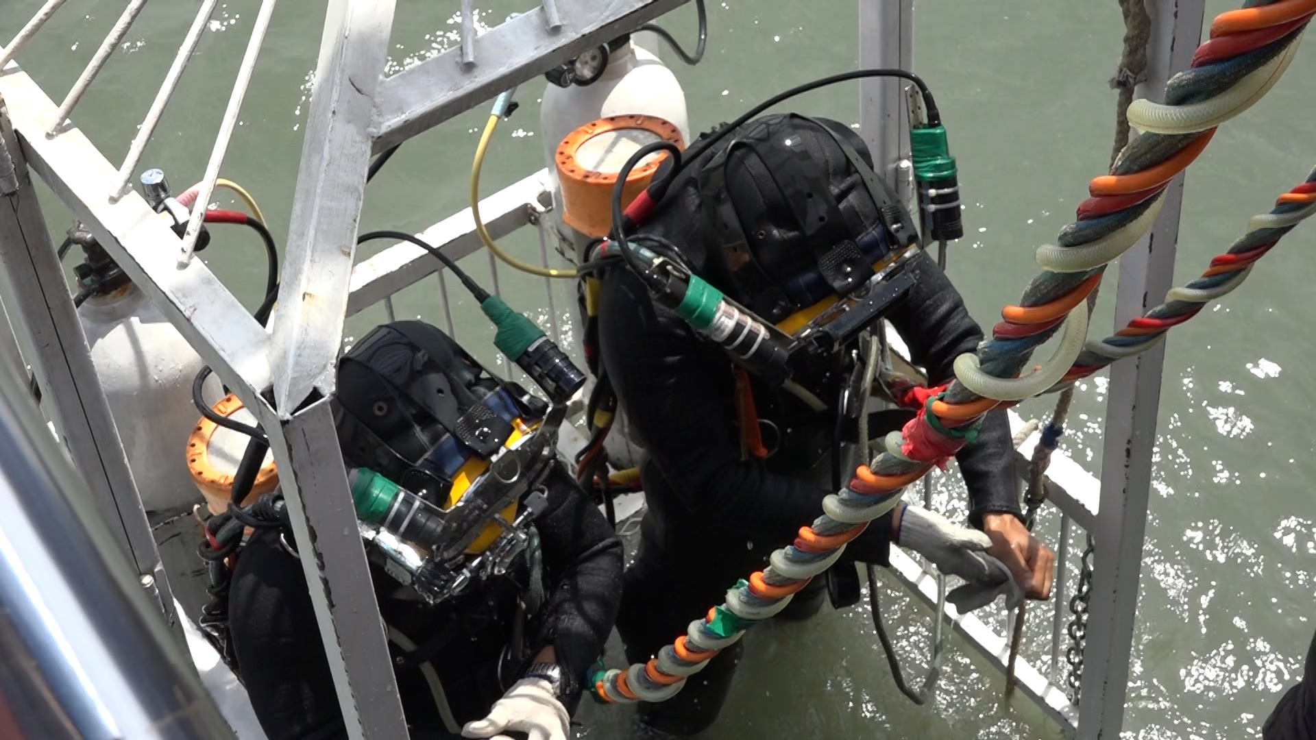 事實上,水底下的工作危機四伏,有時候能見度極差,作業員幾乎是摸黑在工作,還得面對各種突如其來的狀況,稍有閃神恐怕就會被死神召喚。而「潛水病」更是水下作業須嚴防的職業傷害,黃欽銘透露,曾經在水下為了趕工程進度而忽略了時間,導致下半身產生潛水病,「就像幾萬根針在刺一樣,大部分都是麻痺的」,所幸當時上半身並無大礙,意識清晰的他馬上要求船上的夥伴替它掛急診,緊急送醫連續治療一個多星期才康復。