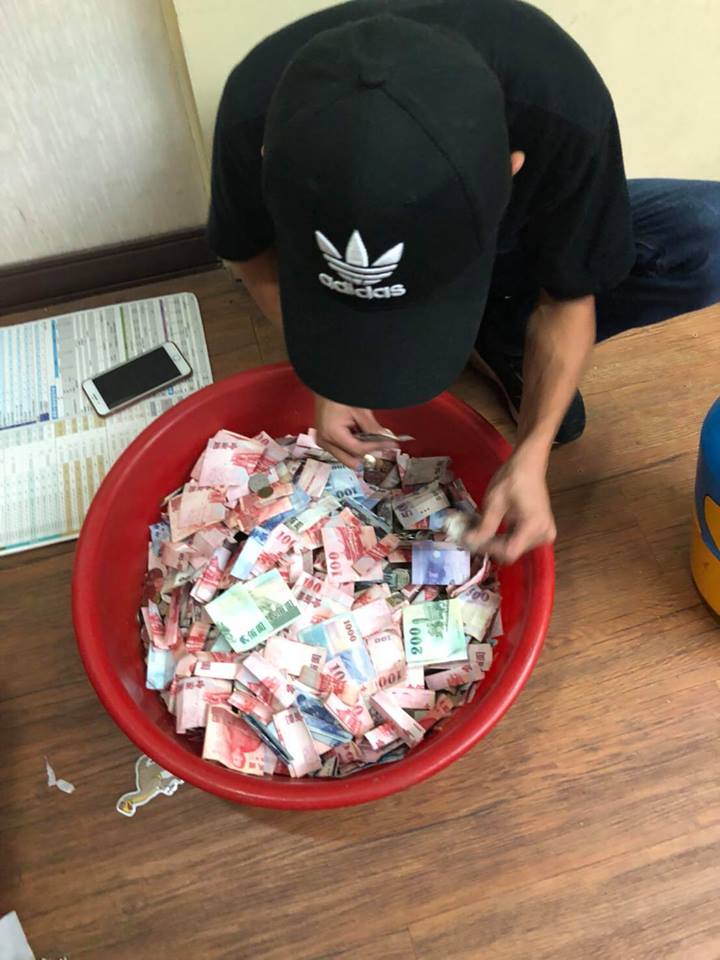 只見這個小小兵存錢筒放上體重機,足足重達52.1公斤,存款約有49公斤。而小小兵被「開腦」處理之後,張爸爸把所有的鈔票和硬幣全數倒在大盆子裡,滿滿的一大盆錢,令人看了好興奮,全家人也都紛紛來幫忙數錢。而面對大家好奇到底存了多少,張爸爸霸氣表示:「不吊胃口了,總金額20萬!」