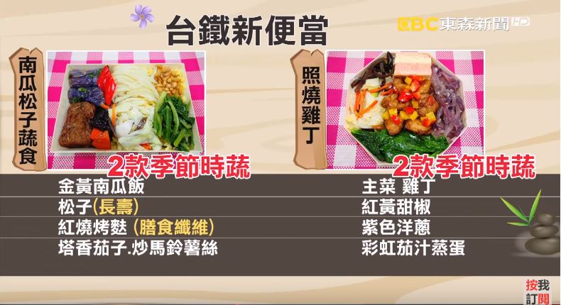 台鐵便當有新口味,主打養生,推出「照燒雞丁便當」和「南瓜松子蔬食便當」,力拚便當版圖轉型!