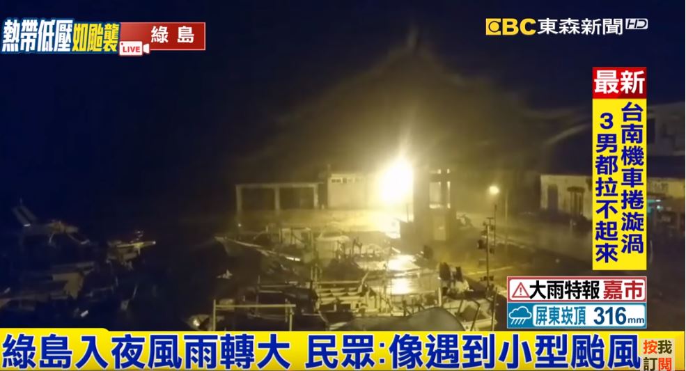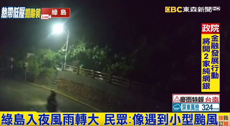 另一頭,機車騎士在暗夜中冒雨前進,場面相當驚險,當地民眾表示,這個熱帶性低氣壓就像是小型