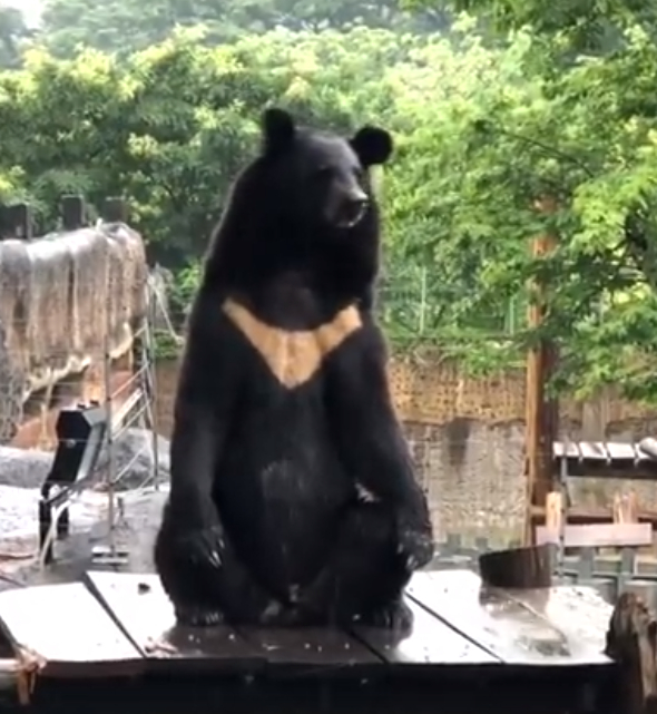 壽山動物園臉書粉專昨(14)日上傳一段黑熊波比的影片,並寫道「在雨中打坐的波比」,畫面中可見,波比全身挺直地盤腿而坐,雙手穩穩地放在膝蓋上,儘管一邊淋著小雨,一邊緩慢地左顧右看,神情相當淡定悠哉,也讓不少網友看了直呼「波比大師」。