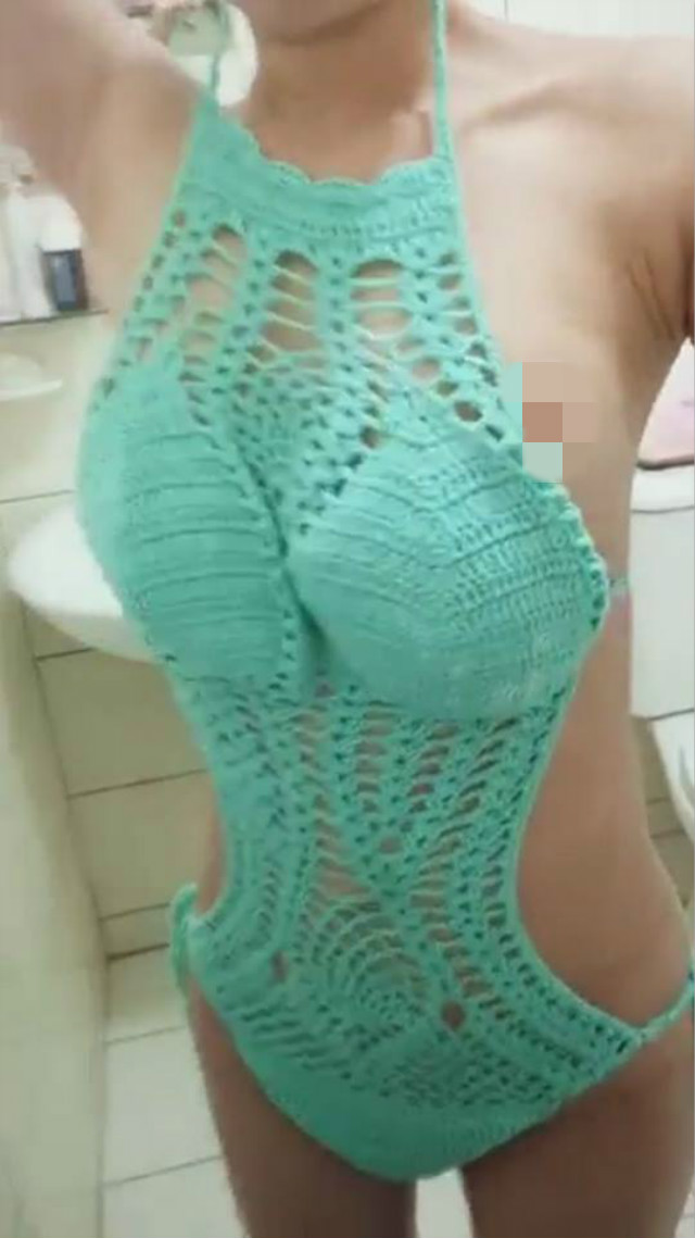 一名網友在爆廢PO文,「現在直播都要玩這麼大嗎?」並附上一張截圖,直播主身穿Tiffany綠的針織比基尼,性感惹火,準備在浴室直播洗澡,就在調整身上比基尼時,左乳露點曝光,直播主趕緊調整,沒想到直播沒多久,整件鬆開,導致胸前2點完全曝光,部分網友截圖貼網流傳,隨即被其他人搜出這位直播主詳細資料。