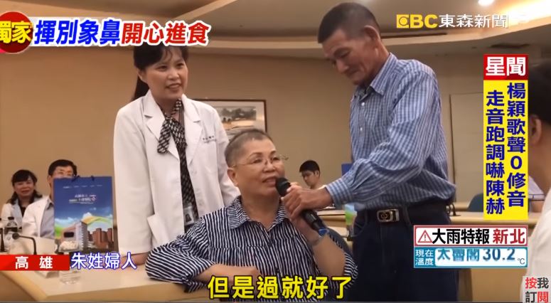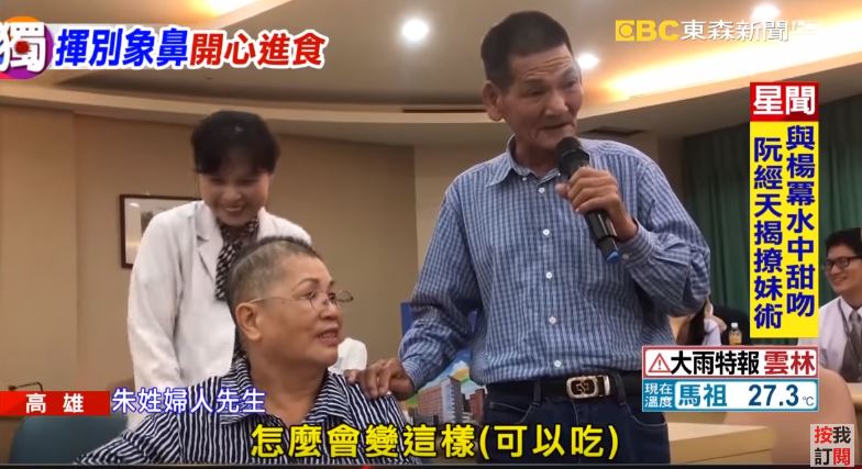 不僅鼻胃管不用再放回臉上,還可以接受語言治療復健,兩個星期後,朱姓婦人可以正常行走、飲食,讓她和丈夫都很驚訝,也開心揮別象鼻子人生。