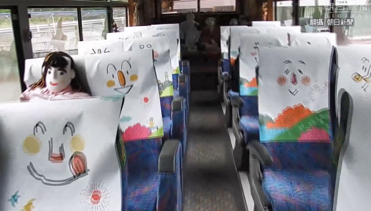 日本香川縣居民揮手歡送觀光巴士出發,但一上車可能會讓人嚇一跳,原來日本香川縣的琴平觀光巴士7月初上路,不過香川縣地處偏遠,業者預料觀光人數一定不會客滿,決定將最後4排座椅全拆掉,改造成一群假人圍著日式地爐的裝飾,座位間也放置稻草人,想讓獨自1人搭車的乘客感受到團體旅行的熱鬧氣氛,而日本各地的觀光巴士為了招攬客人,也是各出奇招。
