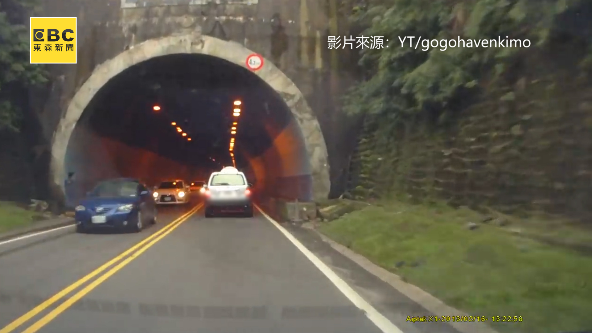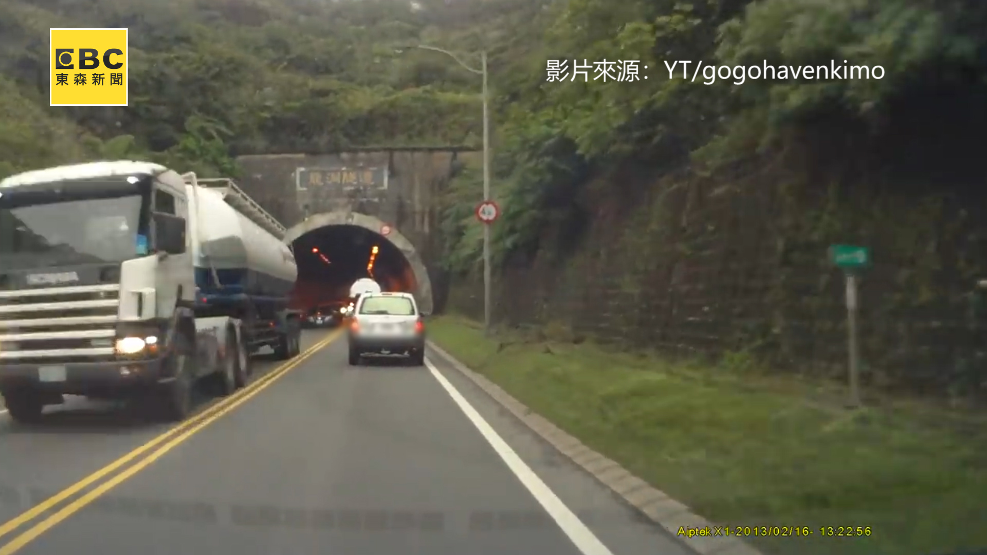 只見影片中對向油罐車出隧道後,就無故的連按幾次喇叭,而小車駕駛不以為意便繼續行駛,但後方駕駛疑似嫌車速過慢,便跨越雙黃線超車,不料被前方臨檢的