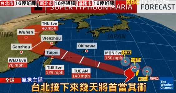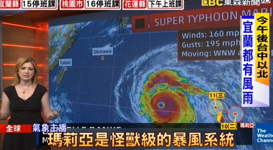 氣象主播:「這颱風將對日本南部島嶼,以及台灣造成威脅,我們可以看到,台北接下來幾天將首當其衝。」
