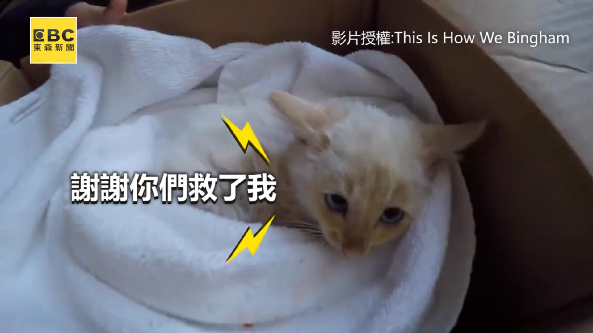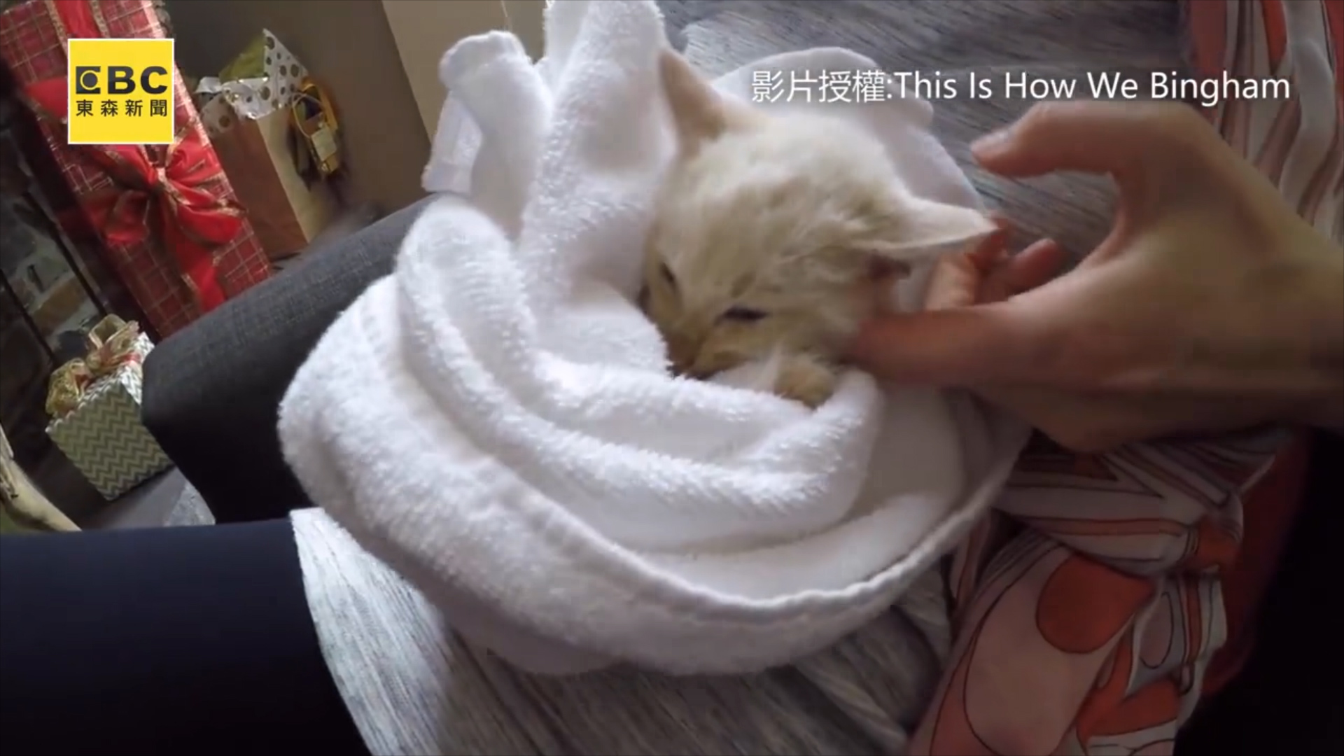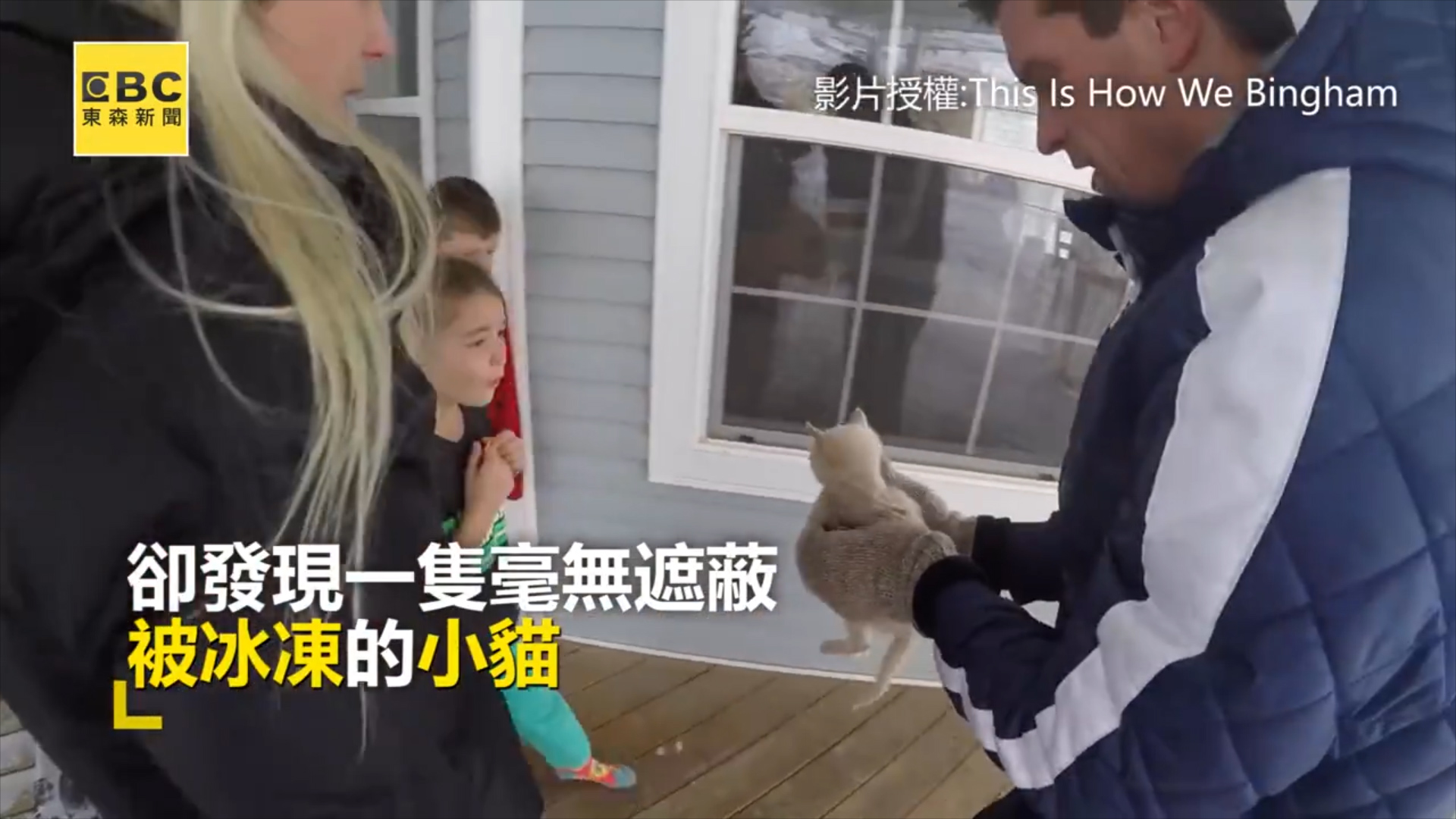 貓,這一家人趕緊將小貓帶回屋內,不斷幫小貓按摩著,還有人在一旁說:「快幫牠做CPR!」