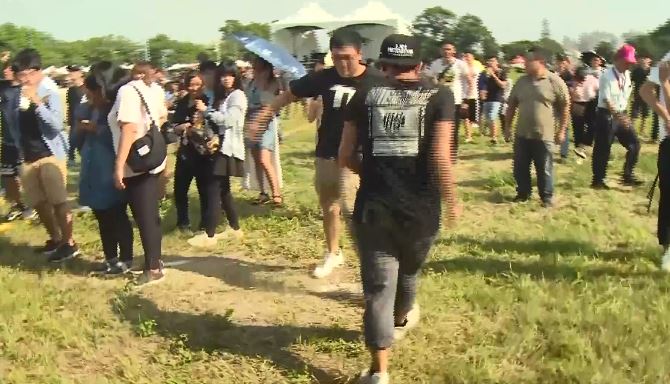 可惜天空不作美,活動進行到一半卻突然下起大雨,但現場的民眾仍決定待在舞台前,甚至有人大喊,「換我們供欸告,做欸告了啦!(說到做到)」,直到天空打雷,眾人才不捨的前往帳篷避雨,根據《ETtoday新聞雲》報導,就在所有人在帳篷內躲雨,感到沮喪時,林義豐本人突然現身,在現場擺出招牌「7字手」,一邊奮力揮舞右手,還一邊對周圍民眾重複喊著「
