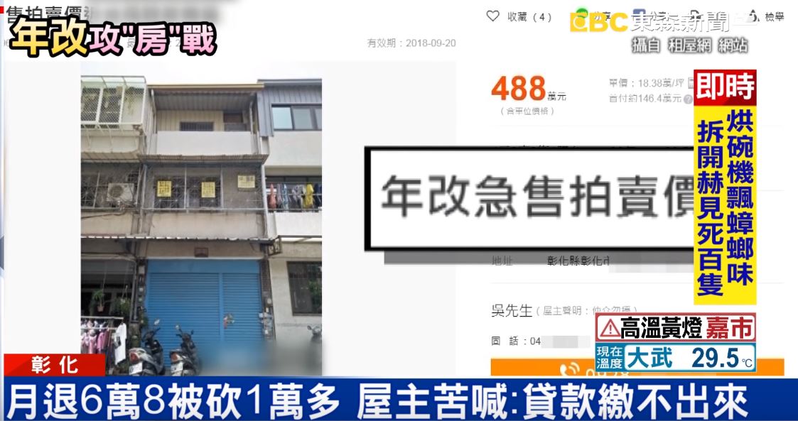 出租,但加上自己住的房子每個月貸款3萬多,經濟壓力的情況下才忍痛出售,還在網路上面以「年改出售」的標題吸引買家。