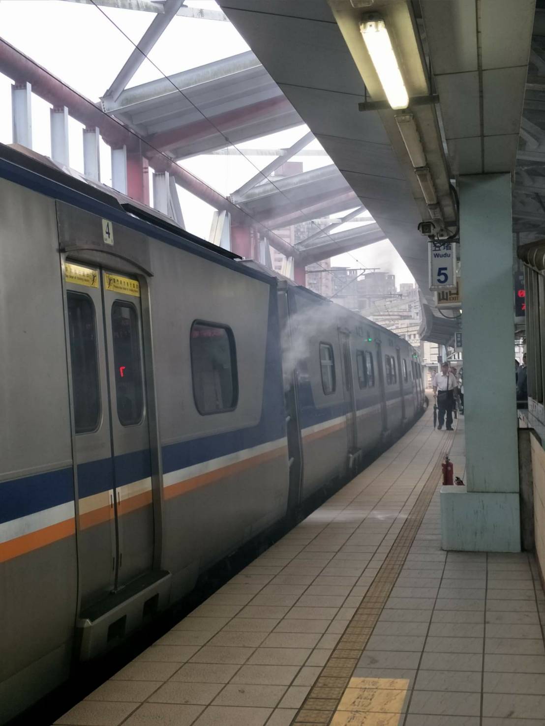,車廂內冒出陣陣白煙,不少通勤的上班族都受到影響,台鐵目前正在處理中,已請旅客換乘1127次,南下部份列車多有