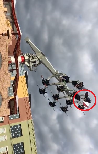 旋轉遊樂設施上,一名遊客卻瘋狂