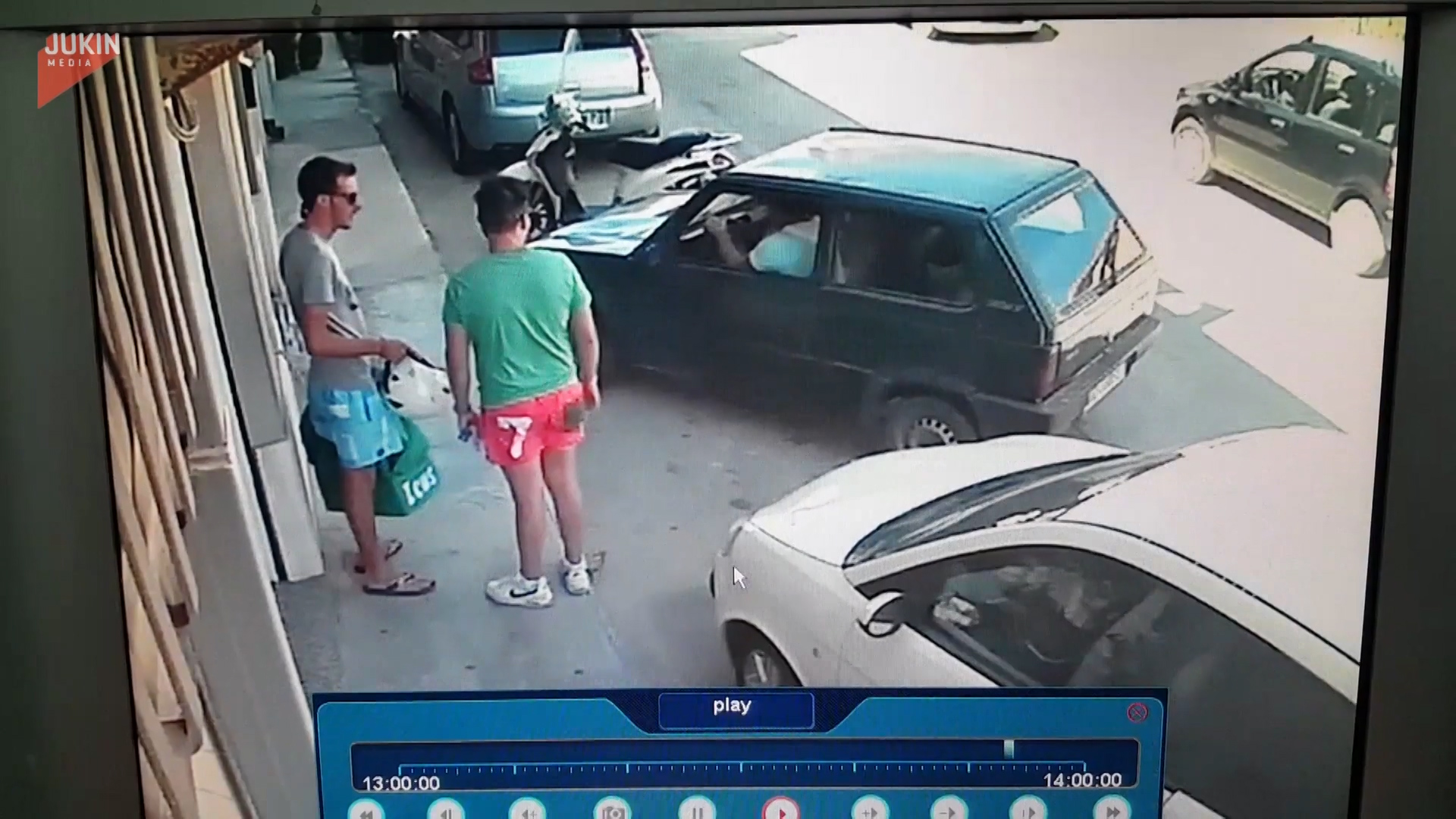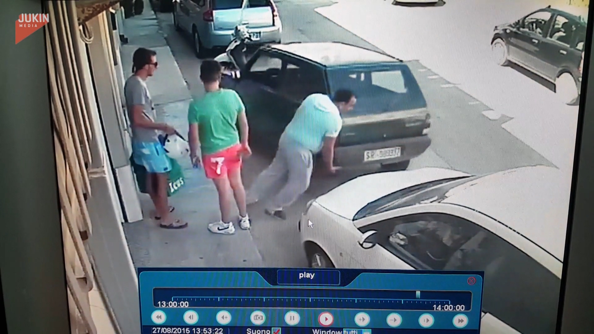 義大利一名男子的愛車前後都遭卡死,他思考了一下後,居然徒手抬起整輛車,將它搬至一旁,隨後從容地坐上駕駛座,開車而去,一旁原本在聊天的路人看到這幕,都露出傻眼的表情。