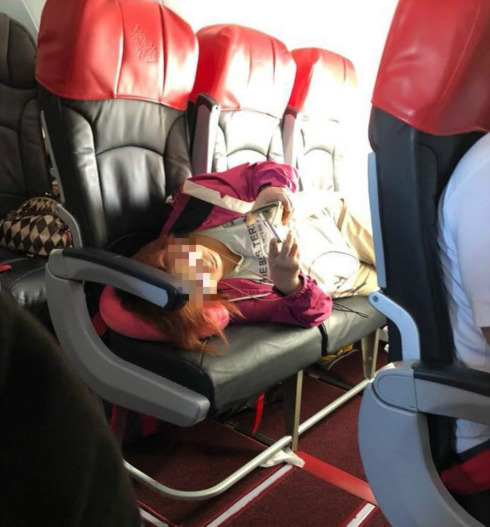 根據英國《太陽報》報導,日前一班從吉隆坡飛往香港的廉航班機上,一名大媽原本購買的是經濟艙座位,卻在班機起飛前,突然「自行升等」,跑到較寬敞的商務艙,還一次霸佔3個座位,甚至一度把機位當成床鋪躺下。空服員發現後上前勸導,解釋商務艙必須加價才能使用,這名大媽和空服員爭執了將近5分鐘,最後才走回自己的位子。