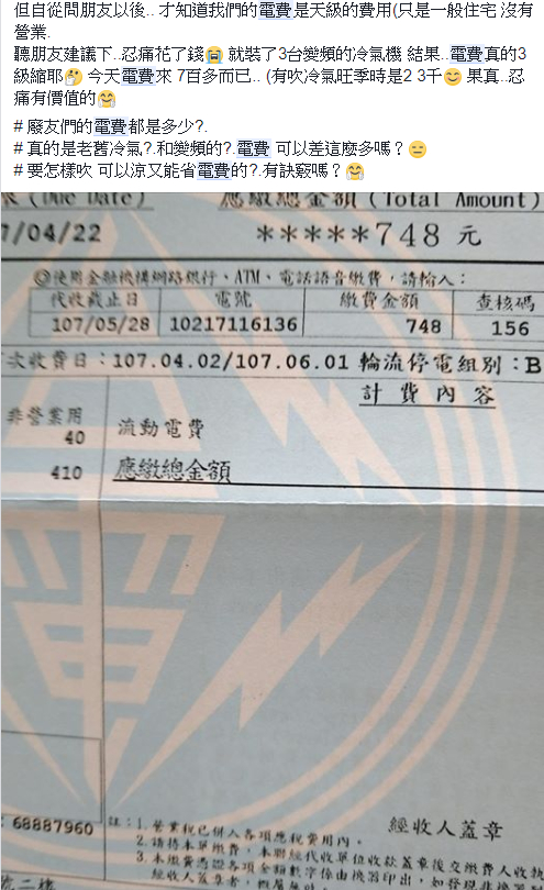 其實從節目片段中可以發現,實驗的冷氣應為新型的變頻冷氣,舊型的定頻冷氣並不適用於此次專家所做出的結論。有網友也在不公開社團中PO出照片,表示自家冷氣換成新型變頻冷氣後,電費3級縮,只有7百多元。