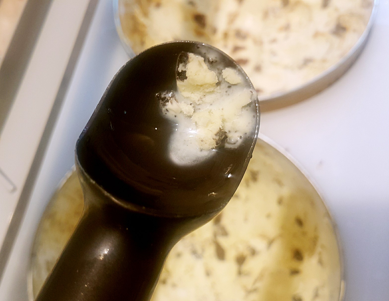 哈根達斯」冰淇淋,但當他期待的拿冰淇淋勺開挖時,卻發現冰淇淋硬到只能挖出