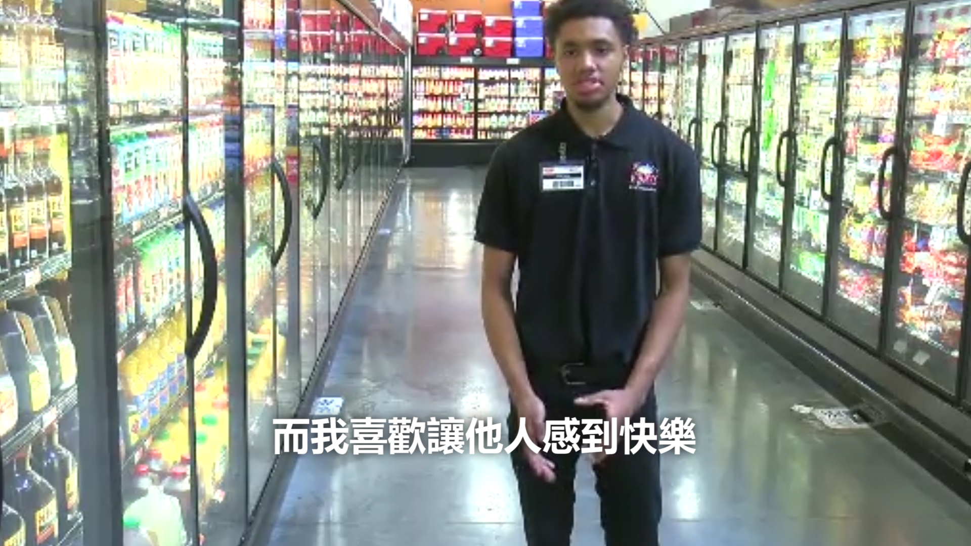 原本以為傑克是想要柳橙汁,但泰勒給了他一瓶柳橙汁後,傑克仍然痴痴地盯著,於是他開口問傑克:「你想幫忙嗎?來吧!」接著傑克和泰勒分工合作,將柳橙汁不斷上架,柳橙汁上架完,又換上架牛奶,總共歷時半小時,而一旁的泰勒絲毫都不覺得麻煩,沒有露出半點不耐的神情。