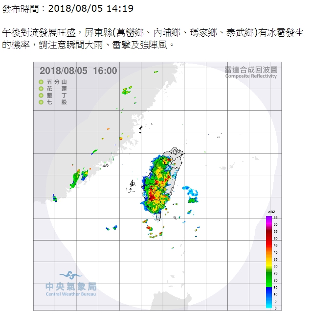 午後對流旺盛,中央氣象局今天針對全台16縣市發布大雨特報,提醒民眾注意雷擊、強陣風和溪水暴漲。 ★最新最熱門影片你還沒看過?★ 【EBC東森新聞有IG了,一起追蹤吧】 ▼(圖/中央氣象局)
