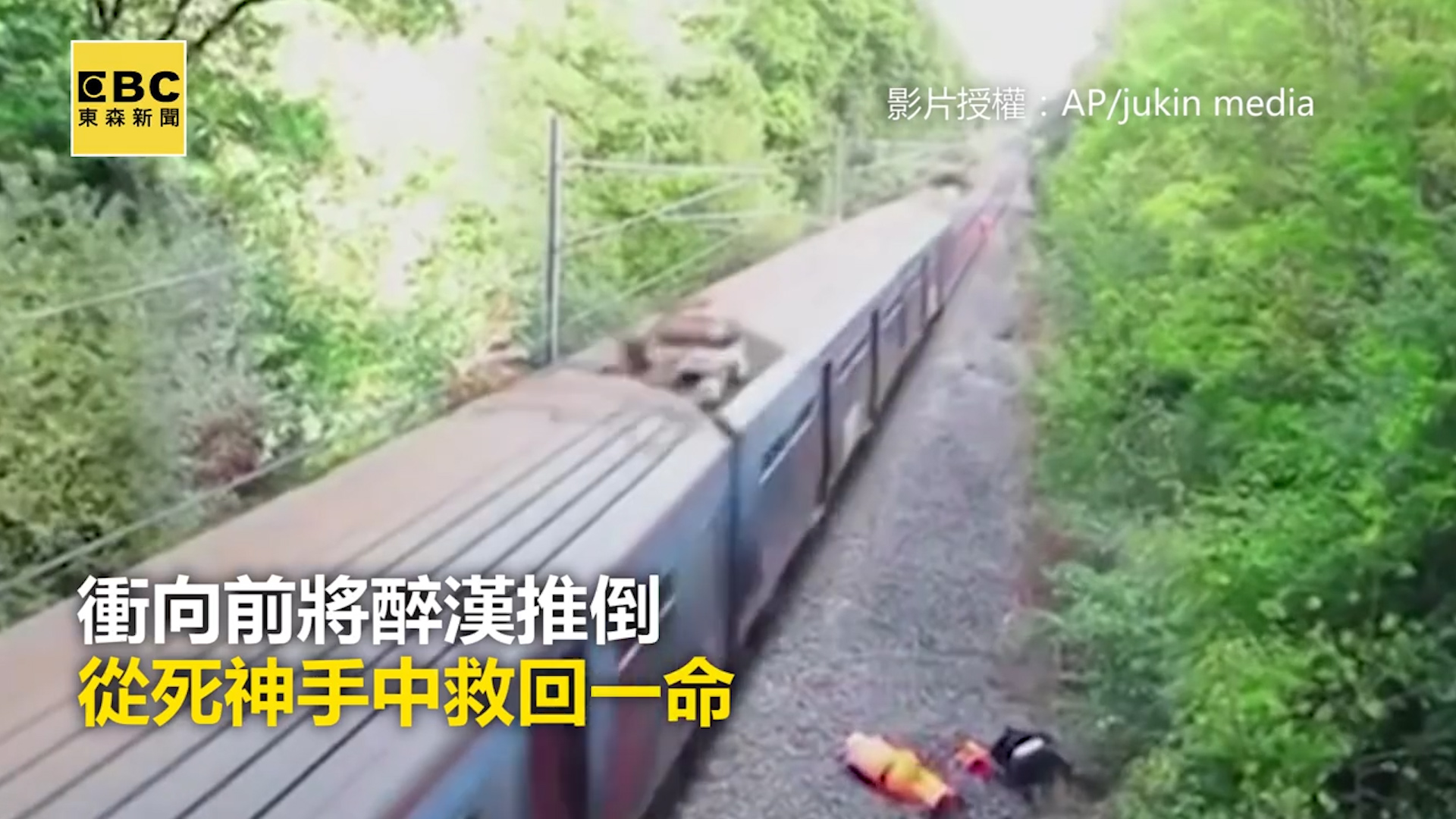 都因此而起。國外一名醉漢,想要穿越火車軌道,但醉漢身體搖晃、步伐不穩,在軌道上不甚跌倒,東西散落一地。在醉漢慢慢撿著東西時,一輛火車準備要通過。所幸軌道施工人員,從後方察覺有異,衝向前將醉漢推倒,從死神手中救回一命。