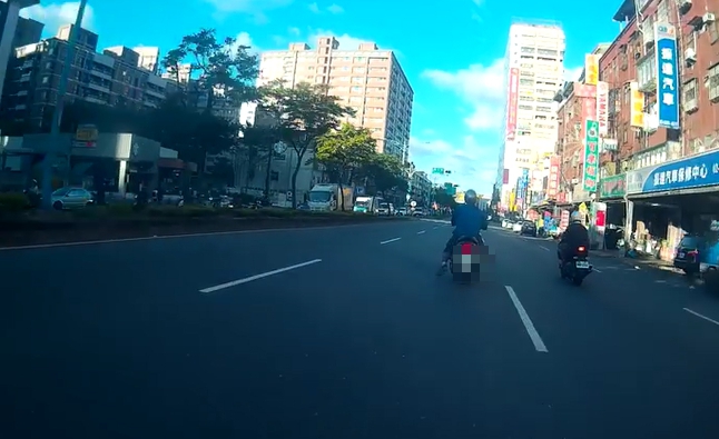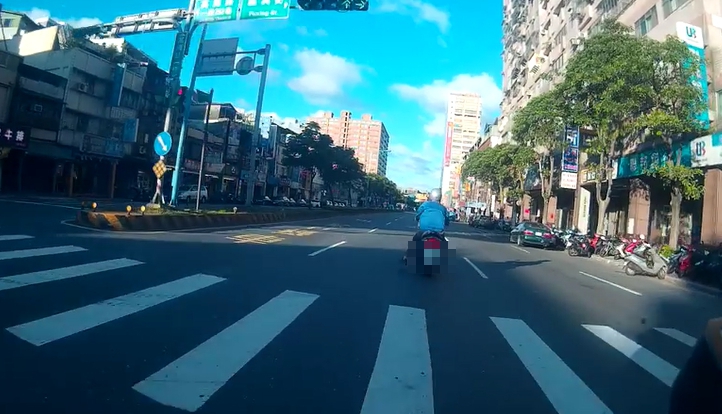 這位「輕功騎士」似乎心情不錯,畫面可見,他不時搖頭晃腦,欣賞周邊街景,搞笑的是,他騎到第二個路口時,看見交通號誌將變紅燈,此時雙腳打直放在兩側,不再晃動,宛如連動剎車系統,隨著機車慢慢減速,讓人看了會心一笑。