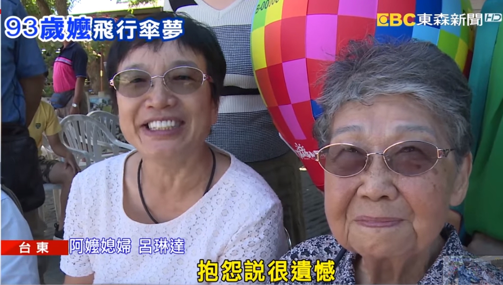 阿嬤媳婦呂琳達:「已經是第2次了,因為80歲的時候,她有在萬里也有坐一次,可是因為風速的關係,1分鐘就下來了,然後她就一直抱怨說很遺憾。」