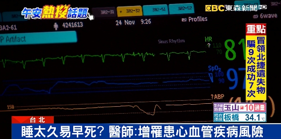 新光醫院心臟內科主任邱俊仁:「我們人如果熬夜、日夜顛倒、淺眠、早睡、晚睡或太早起的話,反而血壓心跳會更高,人會休息不夠也是不好。」