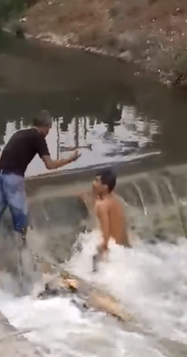 消暑,可能是在溪水落差中的空間呼吸,根本沒發生意外,大叔似乎鬆了口氣,並揮手示意男子起身離開,不過男子看起來相當疑惑,過了一下子才瞭解狀況,緩緩站起來,結束這場鬧劇。事發地點似乎是在國外,畫面被一旁路人拍下來傳上網,網友轉貼至「爆笑公社」,直說「夏天到了,請勿在河邊戲水,膽小勿看,慎入」。