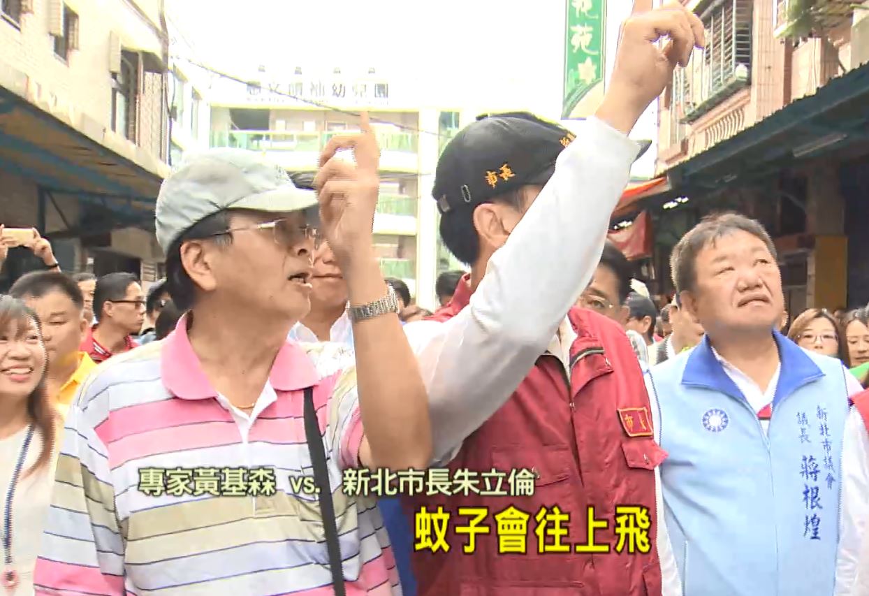 面對登革熱疫情熱區,新北市政府與新莊區公所發動環境大掃除,市長朱立倫更親自巡查。專家黃基森:「蚊子牠跟人不一樣,牠有空間的概念,所以我是做了平行面以外,還做垂直面,這個是非常重要的,因為蚊子會鑽。」