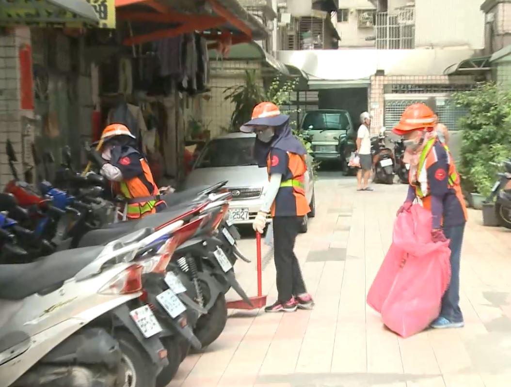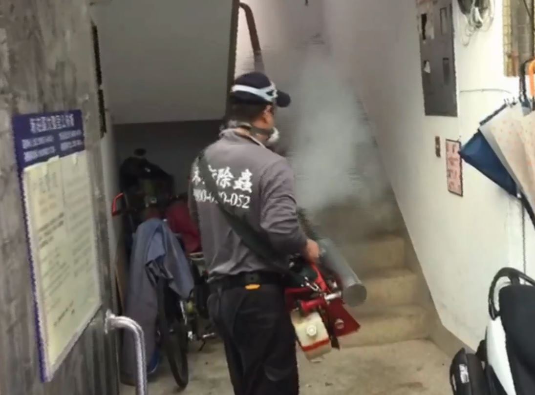 新莊全區進行大掃除,噴藥、消毒、防疫總動員,要戰勝登革熱疫情。
