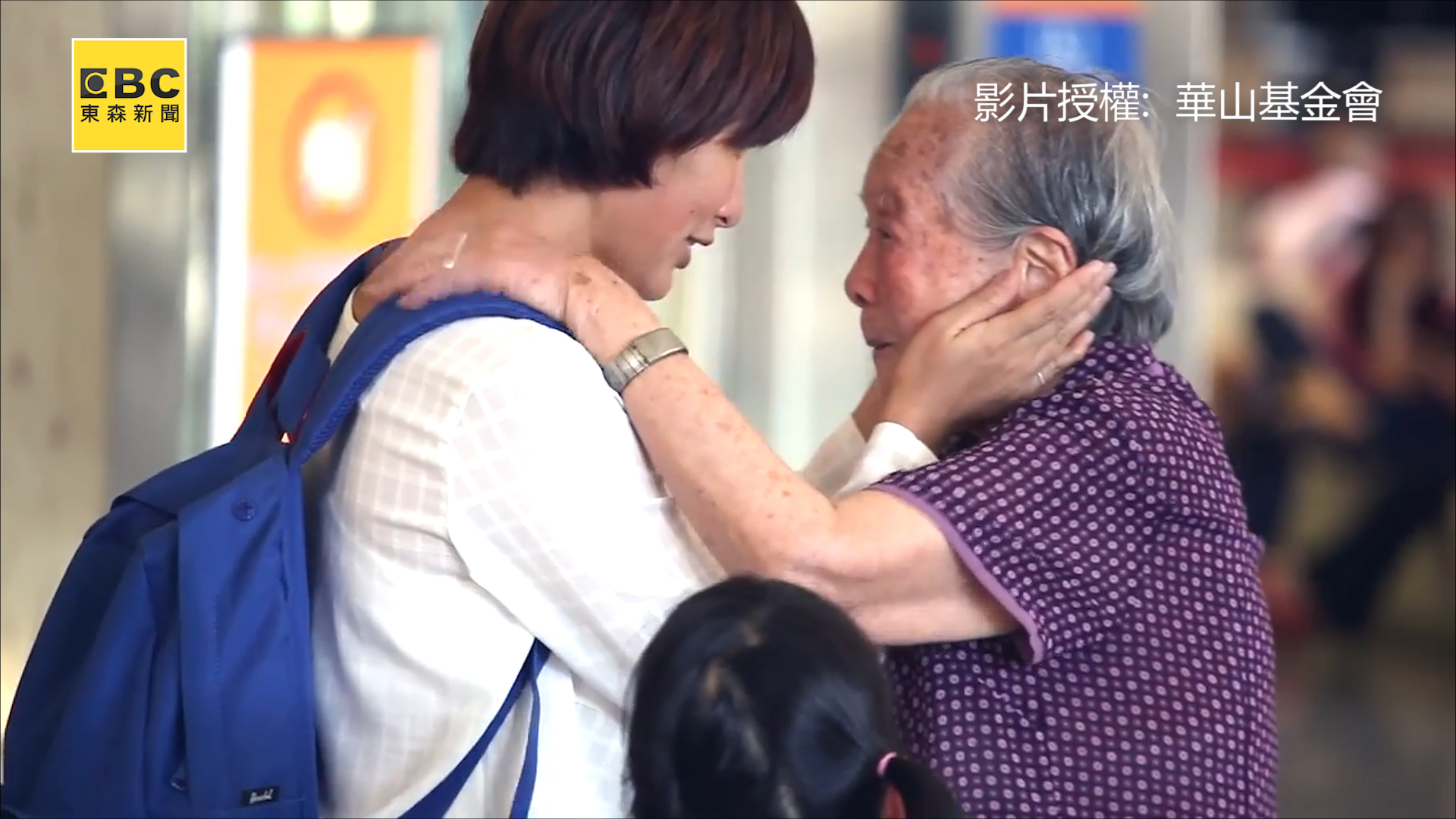 影片中,女兒與年邁已高的媽媽在機場道別,媽媽摸著女兒的臉哽咽地說,「我會保重自己,不要擔心,好好照顧自己,照顧孩子」但卻在女兒轉過身後流下淚來。回到家後,女兒打電話關心她,她仍回答,「你不要擔心,我很好啦」,話筒掛斷後,母親想要伸手拿高處的罐子,卻手抖得厲害。