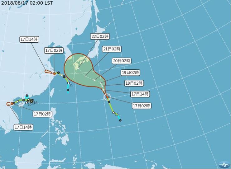 目前有三個颱風,對台灣都無影響,氣象局觀測,第18號輕度颱風「棕櫚」今天清晨已登陸上海,強度逐漸減弱;第16號輕度颱風「貝碧佳」今天將登陸越南北部;第19號輕度颱風「蘇力」位在台北東南東方2110公里的海面上,向北北西轉西北朝日本南方海面接近。