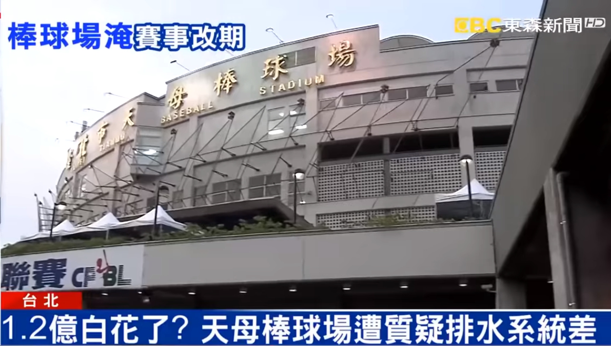 台北市體育局局長李再立:「因為臨時暴雨,所以球場的水沒辦法一次排除掉,所以造成局部淹水情形。」