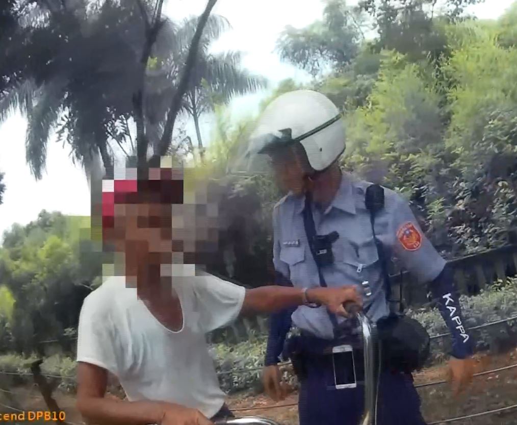 老翁在人行道上騎著三輪車,但一路搖搖晃晃,好幾度都差點摔落邊坡,引起警方注意。警方:「沒關係,他如果可以自己騎就自己騎,他堅持要自己騎,你也沒辦法。」