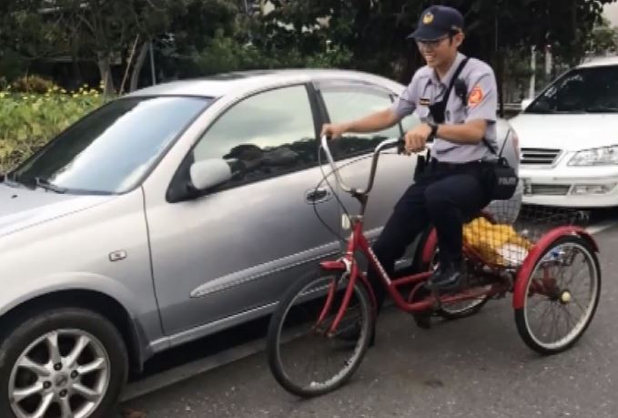 員警看到後上前幫忙,本來想送老翁回家,但老翁遲遲不肯,就擔心三輪車沒人騎,直到員警答應幫老翁把車騎回家,老翁這才答應坐上警車,而員警騎三輪車的模樣,也讓附近居民看傻了,直呼員警是不是沒有分配到巡邏車,才會騎三輪車?