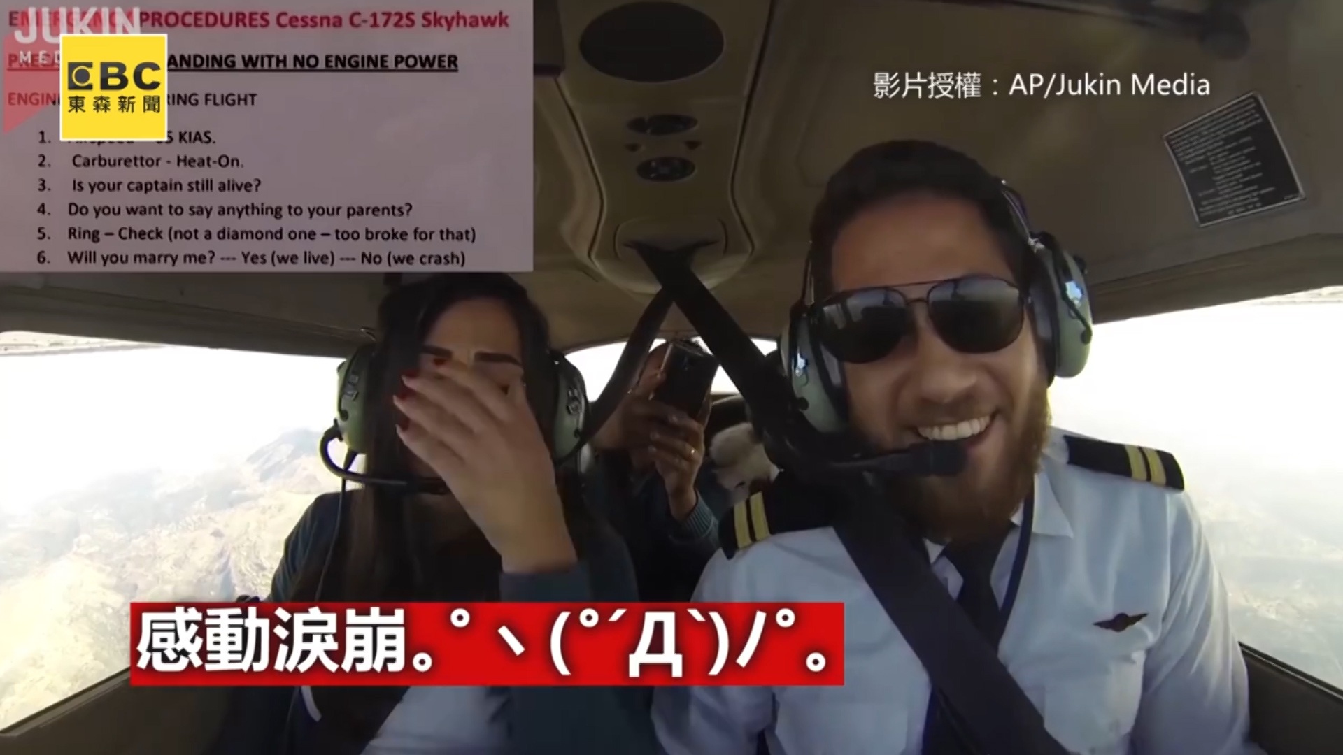 驚恐又驚喜!男士們總會絞盡腦汁設計百百種求婚,希望能給愛人一場終生難忘的回憶,國外這位帥哥機師,為了向女友求婚煞費苦心,他先將女友帶上自駕飛機,接著若無其事的播放出預錄的引擎故障聲,再讓女友唸出「急救卡片」,女友抱著七上八下的心情唸到最後一句淚崩,後頭親友早已把這畫面全都錄下。