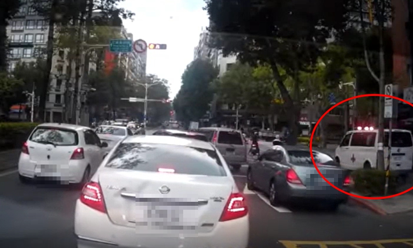 「人溺己溺的救護車駕駛,車上病人情況應該很緊急,直接殺上去人行道!」一名張姓網友PO出一段神救援短片,可見前方有好幾部汽車與機車等紅燈,不久後,救護車鳴笛由遠而近傳來,但當時紅燈還剩27秒,正當所有車輛急忙開道讓路時,救護車早已等不及,乾脆直接衝上「人行道」找洞鑽。
