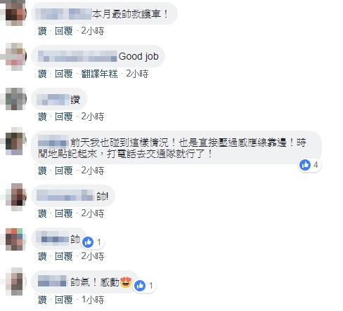 神反應,引發千名網友猛烈討論,紛紛大讚「臨機應變反應好!」、「強,太專業」、「救人如救火,當然是有縫就鑽」、「 讚啦!人命關天」、「本月最帥救護車!」、「前面塞住了,不然要救護車用飛的嗎?」、「最快最簡單的路線」、「救人第一」、「山不轉,路轉,路不轉,人轉」、「真的辛苦了…他們背負著一條命啊」。