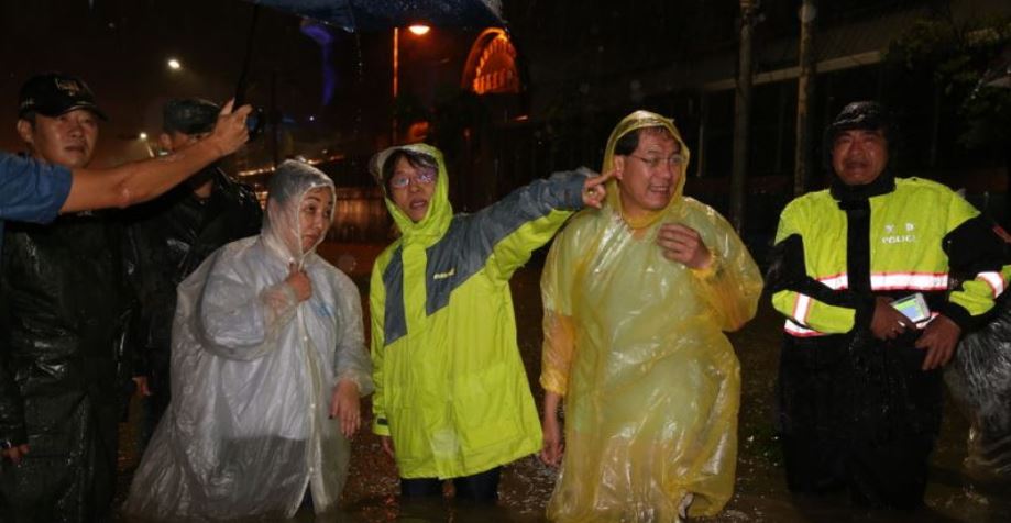 嘉義縣長張花冠昨晚9時從土耳其考察返國後,馬上直奔災害應變中心了解災情,深夜10時由副縣長吳芳銘陪同,搭乘消防車前往東石、布袋勘災。