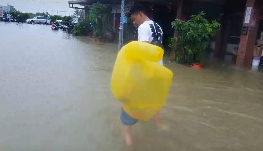 ▼嘉義太保榮工社區淹水,民眾見狀自行撤離(圖/東森新聞)