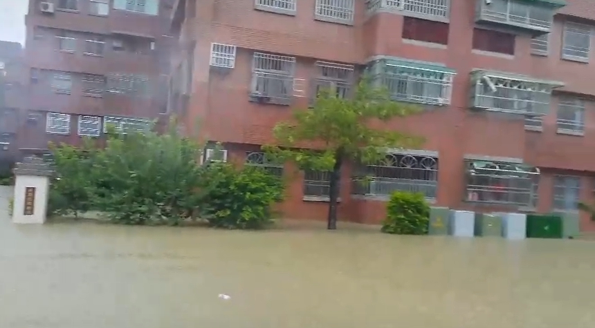 ▼今清晨四點多開始下起大雨不到二個小時就淹沒整個社區(圖/東森新聞)