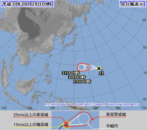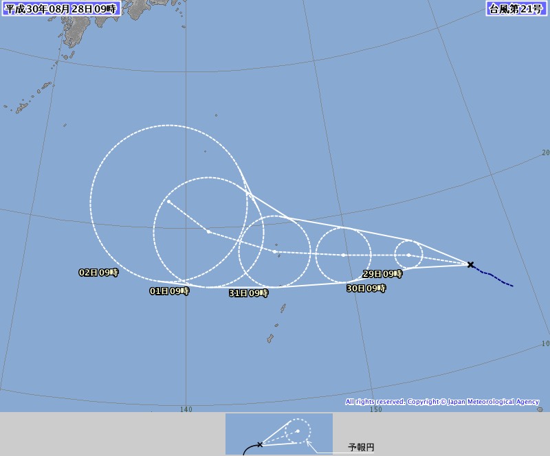 位於關島東方海面的熱帶低壓,今(28)日上午8點鐘由日本氣象廳宣佈,生成今年第21號