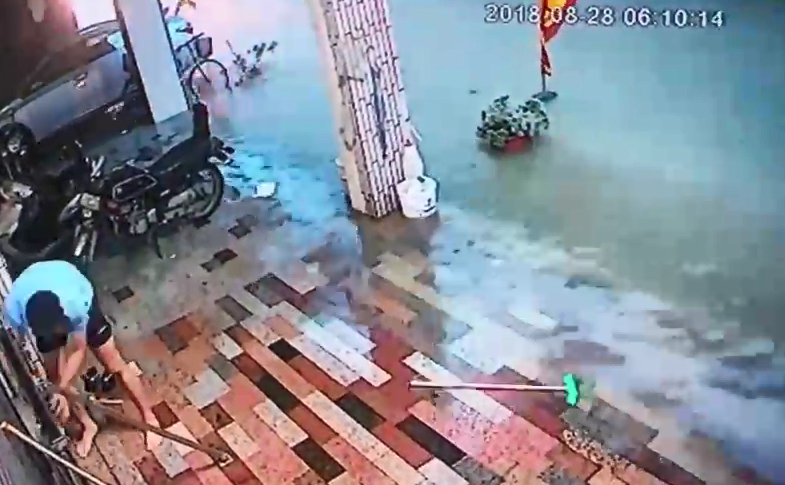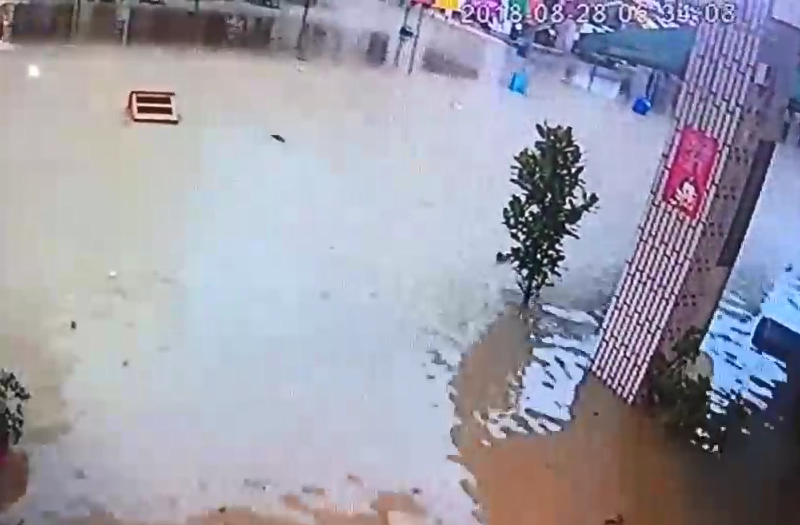 從20秒快轉畫面可見,積水已快淹沒半個輪胎高,民眾正忙著加強防水設備,混濁的水面同時不斷漂流著水桶、掃把,甚至還有家具緩緩流動而過,不少人趕緊將車子移動,以免成了泡水車,畫面險象環生。