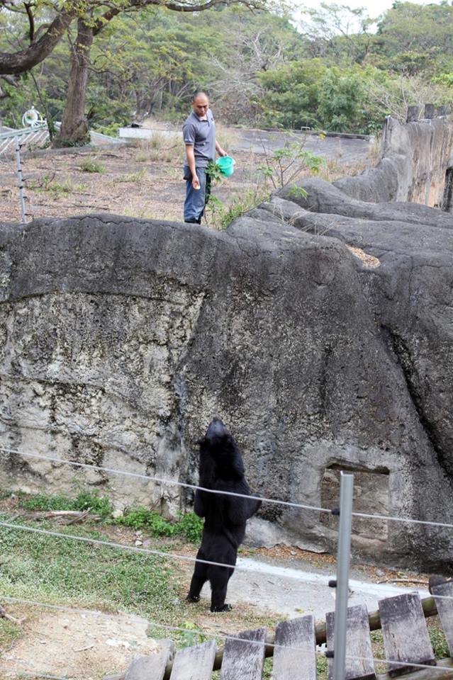 其實這頭名為「波比」的黑熊,站起來是為了讓嗅覺敏銳的黑熊去尋找保育員放在展場的食物,除了可以延長波比進食的時間和樂趣外,保育員也會借此觀察波比的身體外觀和膝蓋是否有異狀。最後壽山動物園臉書還提醒大家,如果波比在棲架上站起來,可能是在找保育員的蹤跡。(畢竟工讀生難請)