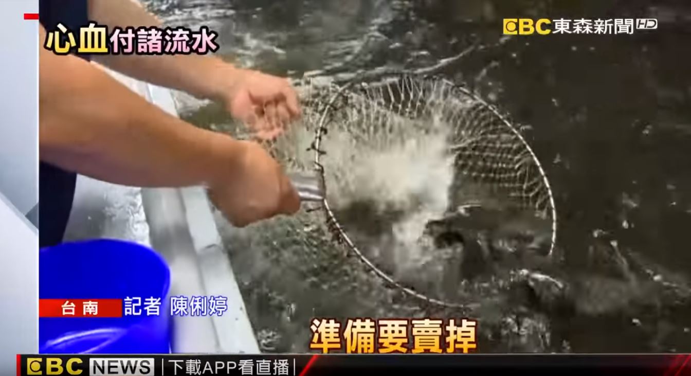台南七股的龍膽石斑養殖場中,珍貴的魚苗游走,業者的心跟著淌血。受災龍膽石斑業者張嘉鑫:「當然心疼啊,培養快一年的魚苗,都要賣了才跑掉,很心疼。」