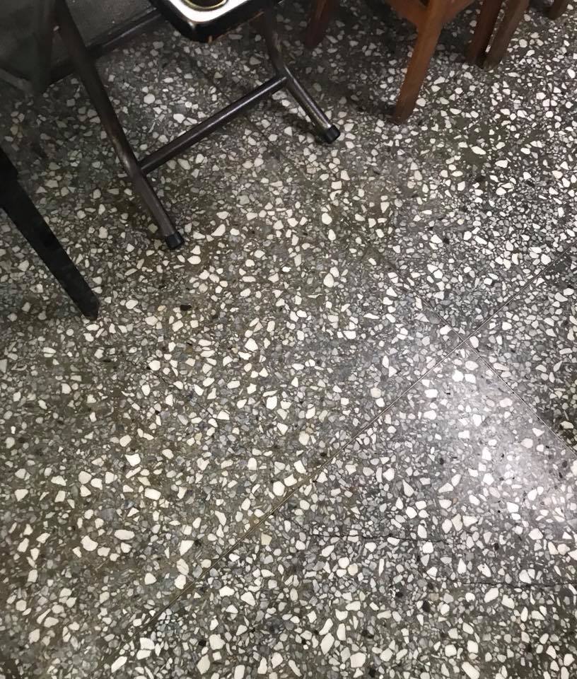一名女網友昨(30)日在臉書社團《爆怨公社》抱怨,說自己去買一碗95元的牛肉麵,「老闆找我5塊錢,結果我一不小心就掉到地上,然後地板長這樣,我的5塊錢就這麼離開我了…」照片中可以看見,店家使用的是傳統磨石地板,黑白塊狀相間,且和5元