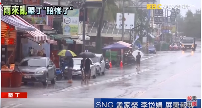 東森新聞記者李岱娟:「西南氣流影響,在墾丁大街這邊人潮很少,而且你看到這個電動車業者,他們的車子都停在這裡了,原因就是遊客他們不出門,出租的車子幾乎都沒有辦法出租出去。」